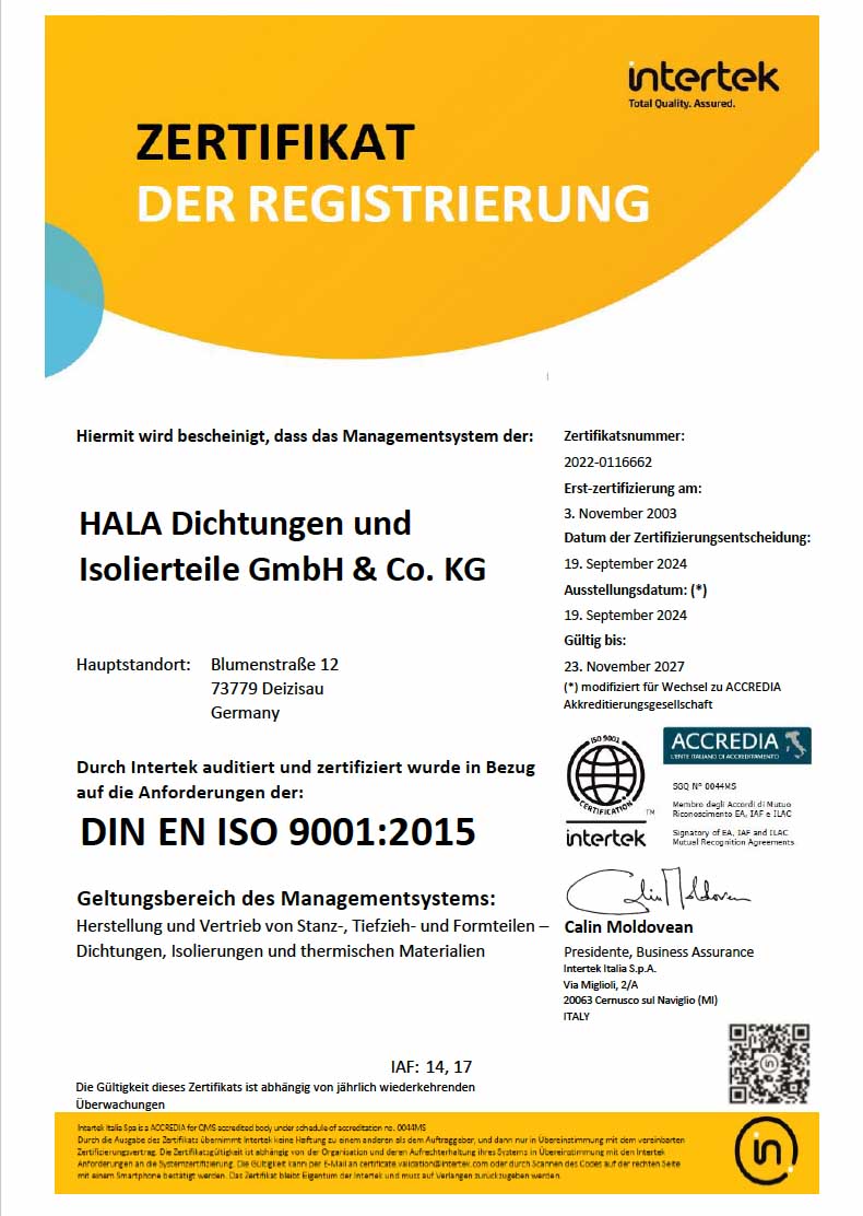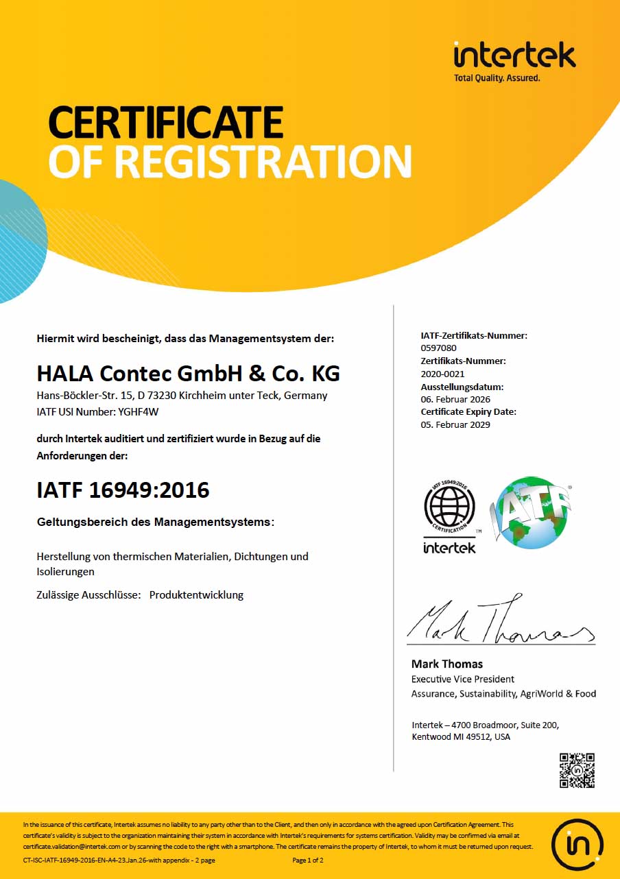Hala ist ISO 9001:2015 und IATF 16949:2016 zertifiziert.